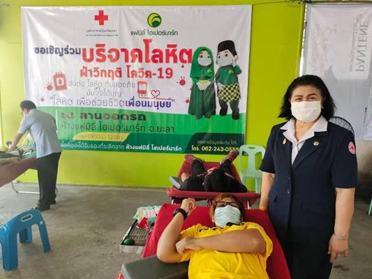 วันที่ 9 กุมภาพันธ์ 2564 นางโสรยา พานิชพงศ์ นายกเหล่ากาชาดจังหวัดยะลา มอบหมายให้คณะกรรมการและสมาชิกเหล่ากาชาดจังหวัดยะลา ร่วมกับโรงพยาบาลยะลา ออกหน่วยรับบริจาคโลหิต และมีผู้เข้าร่วมบริจาคโลหิต จำนวน 95 ราย ปริมาณโลหิต 42,750 ซีซี ณ แฟมีลี่ไฮเปอร์มาร์ท อำเภอเมืองยะลา จังหวัดยะลา เหล่ากาชาดจังหวัดยะลาขอขอบคุณผู้ร่วมบริจาคโลหิตทุกท่าน รวมถึงทุกภาคส่วน ที่มีส่วนร่วมในการสนับสนุนการบริจาคโลหิตครั้งนี้