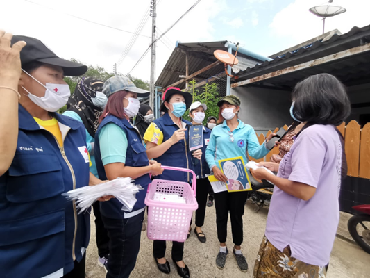 วันที่ 15 พฤษภาคม 2564 นางมุกดา ยังอภัย ณ สงขลา นายกกิ่งกาชาดอำเภอเบตง พร้อมด้วยคณะกรรมการและสมาชิกกิ่งกาชาดอำเภอเบตง ร่วมกับ นายเอก ยังอภัย ณ สงขลา นายอำเภอเบตง พร้อมด้วย นายกเทศมนตรีเทศบาลตำบลธารน้ำทิพย์ สมาชิกสภาเทศบาล นำเจ้าหน้าที่สาธารณสุข และ อสม. ร่วมกันเดินรณรงค์เคาะประตูบ้าน สร้างความเข้าใจให้กับประชาชน ถึงเรื่องการฉีดวัคซีนโควิด-19 โดยการพูดคุยทำให้คนในหมู่บ้านเข้าใจ และคลายกังวลว่าการฉีดวัคซีนไม่เป็นอันตรายอย่างที่คิดไว้ พร้อมทั้งให้คำแนะนำ ขั้นตอนการลงทะเบียน และการใช้งาน แอปพลีเคชั่น “หมอพร้อม”เพื่อรับสิทธิ์การฉีดวัคซีน โควิด 19 เพื่อสร้างภูมิคุ้มกันหมู่ให้แก่ประชาชน ตลอดจน นำหน้ากากอนามัย เจลแอลกอฮอล์ล้างมือ แจกจ่ายแก่ประชาชน ในพื้นที่ของตำบลธารน้ำทิพย์ อำเภอเบตง จังหวัดยะลา15 พ.ค.64 เวลา 13.30 น. นางมุกดา ยังอภัย ณ สงขลา นายกกิ่งกาชาดอำเภอเบตง พร้อมด้วยคณะกรรมการและสมาชิกกิ่งกาชาดอำเภอเบตง ร่วมกับ นายเอก ยังอภัย ณ สงขลา นายอำเภอเบตง เทศบาลเมืองเบตง , โรงพยาบาลเบตง , สาธารณสุขอำเภอเบตง สมาชิกสภาเทศบาลเมืองเบตง ประธานชุมชนสวนผัก อสม. ร่วมกันเดินรณรงค์เคาะประตูบ้าน สร้างความเข้าใจกับประชาชน ถึงเรื่องการฉีดวัคซีนโควิด-19 โดยการพูดคุยทำให้คนในชุมชนเข้าใจ และคลายกังวลว่าการฉีดวัคซีนไม่เป็นอันตรายอย่างที่คิดไว้ พร้อมทั้งให้คำแนะนำ ขั้นตอนการลงทะเบียน และการใช้งาน แอปพลีเคชั่น “หมอพร้อม”เพื่อรับสิทธิ์การฉีดวัคซีน โควิด 19 เพื่อสร้างภูมิคุ้มกันหมู่ให้แก่ประชาชน ตลอดจน นำหน้ากากอนามัย เจลแอลกอฮอล์ล้างมือ แจกจ่ายแก่ประชาชนในพื้นที่ของเทศบาลเมืองเบตง อำเภอเบตง จังหวัดยะลา