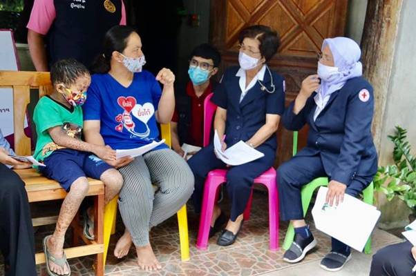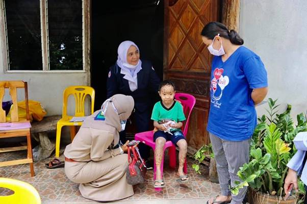 โดยเหล่ากาชาดจังหวัดยะลา ได้มอบเงินช่วยเหลือครอบครัว , เครื่องอุปโภคบริโภค พร้อมทั้งได้ให้คำแนะนำในการดูแลตัวเอง การไปพบแพทย์ตามนัด และได้แจ้ง เจ้าหน้าที่ รพ.สต./ อสม.ช่วยออกไปเยี่ยมเยียนดูแลอย่างสม่ำเสมอ