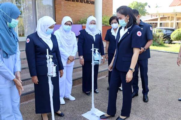 วันที่ 22 มกราคม 2564 นางโสรยา พานิชพงศ์ นายกเหล่ากาชาดจังหวัดยะลา มอบหมายให้นางพาตีเมาะ สะดียามู รองผู้ว่าราชการจังหวัดยะลา รองนายกเหล่ากาชาดจังหวัดยะลา เป็นประธานในพิธีมอบ แท่นกดเจลแอลกอฮอล์แบบเท้าเหยียบ แก่หน่วยงานบริการทางการแพทย์และสาธารณสุขของรัฐที่ขาดแคลน เพื่อใช้ในการป้องกันการแพร่ระบาดของโรคโควิด – 19 จำนวน 2 แห่ง ได้แก่ สำนักงานสาธารณสุขอำเภอกรงปินัง และสถานีอนามัยเฉลิมพระเกียรติ 60 พรรษา นวมินทราชินี บ้านโฉลง ตำบลปุโรง อำเภอกรงปินัง จังหวัดยะลา โดยมีนางอนงค์ลักษณ์ พรมโอภาษ รองนายกเหล่ากาชาดจังหวัดยะลา กรรมการและสมาชิกเหล่ากาชาดจังหวัดยะลา เข้าร่วมพิธีมอบในครั้งนี้ ณ บริเวณหน้าสำนักงานเหล่ากาชาดจังหวัดยะลา อำเภอเมืองยะลา จังหวัดยะลา