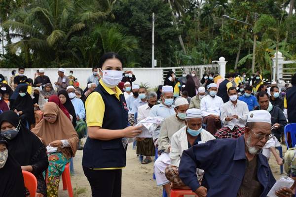 เจ้าหน้าที่ฝ่ายปกครองร่วมลงพื้นที่และมอบชุดธารน้ำใจ สภากาชาดไทย จำนวน 250 ชุดในการนี้ เหล่ากาชาดจังหวัดปัตตานี ได้มอบหน้ากากแบบผ้า จำนวน 250 ชิ้น ให้แก่ประชาชน เพื่อนำไปใช้ตามมาตรการการป้องกันโรคติดเชื้อ