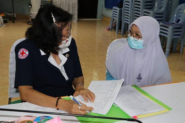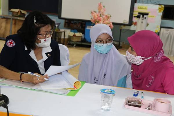 วันที่ 26 มกราคม 2564 นางสุขะนิตย์ สุดพุ่ม นายกเหล่ากาชาดจังหวัดปัตตานี นางปัทมา วิวัฒน์วานิช รองนายกเหล่ากาชาดจังหวัดปัตตานีพร้อมด้วยคณะกรรมการและสมาชิกเหล่ากาชาดจังหวัดปัตตานีลงพื้นที่ตรวจเยี่ยม และติดตามผลการเรียนของนักเรียนในพระราชานุเคราะห์สมเด็จพระกนิษฐาธิราชเจ้า กรมสมเด็จพระเทพรัตนราชสุดาฯสยามบรมราชกุมารี จำนวน 6 รายณ โรงเรียนศิริราษฎร์สามัคคี อ.มายอ จ.ปัตตานีในการนี้ เหล่ากาชาดจังหวัดปัตตานี ได้มอบเงินสนับสนุนเบื้องต้นรายละ 1,000 บาท พร้อมมอบชุดยังชีพ รายละ 1 ชุดและมอบหน้ากากแบบผ้า ตราสัญลักษณ์สภากาชาดไทยจำนวน 200 ชิ้น