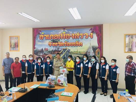 วันที่ 18 พฤศจิกายน 2563 นายชยันต์ ศิริมาศ ผู้ว่าราชการจังหวัดร้อยเอ็ด พร้อมด้วยทันตเเพทย์หญิงศิริรัตน์ ศิริมาศ นายกเหล่ากาชาดจังหวัดร้อยเอ็ด หัวหน้าส่วนราชการ นายอำเภอเมืองสรวง คณะกรรมการเหล่ากาชาดจังหวัดร้อยเอ็ด และเจ้าหน้าที่ที่เกี่ยวข้อง ร่วมกิจกรรมในโครงการ “วันผู้ว่าฯ และนายกเหล่ากาชาด บำบัดทุกข์ บำรุงสุข ปวงประชา” ณ พื้นที่ตำบลหนองผือ และตำบลเมืองสรวง อำเภอเมืองสรวง จังหวัดร้อยเอ็ด ในการนี้ ได้ลงพื้นที่เยี่ยมให้กำลังใจราษฎรที่ได้รับความเดือดร้อน พร้อมมอบถุงยังชีพ และผ้าห่ม ให้แก่ราษฎรในพื้นที่อำเภอเมืองสรวง จำนวน 10 ราย