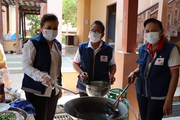 วันที่ 19 กุมภาพันธ์ 2564 ที่จวนผู้ว่าราชการจังหวัดปทุมธานี นางกุลทรัพย์ ชื่นโกสุม นายกเหล่ากาชาดจังหวัดปทุมธานี พร้อมด้วยนางพรอัปสร นิลจินดา รองนายกเหล่ากาชาดจังหวัดปทุมธานี คณะกรรมการและสมาชิกเหล่ากาชาดจังหวัดปทุมธานี ร่วมเป็นส่วนหนึ่งในการสนับสนุนการทำงาน และส่งกำลังใจให้บุคลากรทางการแพทย์ ต่อสู้กับวิกฤติไวรัสโควิด-19 โดยร่วมกันประกอบอาหาร ภายใต้ “ครัวจวน รวมใจ”ประกอบอาหาร จำนวน 2 เมนู ได้แก่ หมูทอดกระเทียมและไข่เจียวให้กับบุคลากรทางการแพทย์และผู้ป่วยโควิด (Covid-19) โดยการนำไปมอบให้ ณ. โรงพยาบาลราชวิถี 2 โดยมี นายชัยวัฒน์ ชื่นโกสุม ผู้ว่าราชการจังหวัดปทุมธานี และหน่วยงานที่เกี่ยวข้อง ร่วมกิจกรรมในครั้งนี้