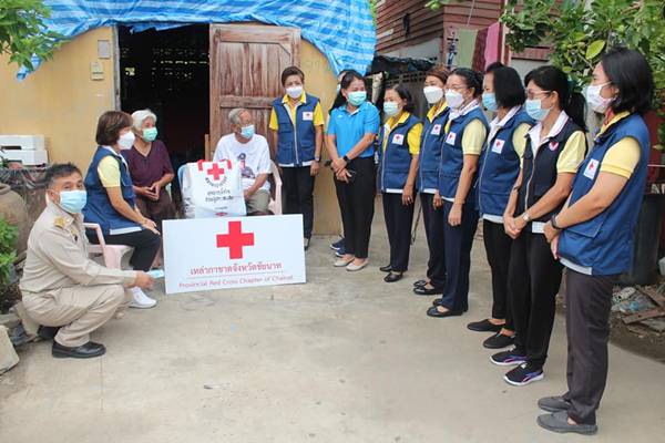 วันที่ 14 มิถุนายน 2564 นางจุฬาภร ศิริเวช นายกเหล่ากาชาดจังหวัดชัยนาท พร้อมด้วยนางนัฐฐา ภูมิฐานนท์ ที่ปรึกษาเหล่ากาชาดจังหวัดชัยนาท นางวรวรรณ ตั่งสินชัย ที่ปรึกษาเหล่ากาชาดจังหวัดชัยนาท คณะกรรมการและสมาชิกเหล่ากาชาดจังหวัดชัยนาท ร่วมกับสำนักงานพัฒนาสังคมและความมั่นคงของมนุษย์จังหวัดชัยนาท บ้านพักเด็กและครอบครัวจังหวัดชัยนาท ศูนย์คุ้มครองคนไร้ที่พึ่งจังหวัดชัยนาท ลงพื้นที่เยี่ยมและให้กำลังใจ พร้อมมอบถุงยังชีพ แก่ผู้ประสบปัญหาทางสังคม ผู้พิการ/ผู้ยากไร้ และผู้ที่ได้รับผลกระทบจากการแพร่ระบาดของโรคติดต่อเชื้อไวรัสโคโรนา 2019 ในเขตเทศบาลเมืองชัยนาท จำนวน 8 ราย หลังจากนั้น ลงพื้นที่เยี่ยมและให้กำลังใจ พร้อมมอบถุงยังชีพ แก่นายวิรัตน์ อยู่เจ๊ก อายุ 54 ปี บ้านเลขที่ 5 หมู่ที่ 1 ตำบลเสือโฮก อำเภอเมืองชัยนาท จังหวัดชัยนาท ป่วยเป็นอัมพฤกษ์ ช่วยเหลือตัวเองไม่ได้ มีภรรยาป่วยเป็นโรคมะเร็ง มีบุตร 2 คน ฐานะยากจน /เหล่ากาชาดจังหวัดชัยนาท