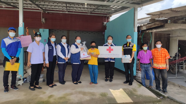 วันที่ 27 พฤษภาคม 2564 นางธัมมิกา เอี่ยมเเสง นายกเหล่ากาชาดจังหวัดระยอง มอบหมายให้ คณะกรรมการ และสมาชิกเหล่ากาชาดจังหวัดระยอง และปลัดอำเภอบ้านค่าย ลงพื้นมอบถุงยังชีพของเหล่ากาชาดจังหวัดระยอง ตามโครงการเหล่ากาชาดจังหวัดระยองมอบชุดธารน้ำใจ จากการแพร่ระบาดของโรค Covid-19 ประจำปีงบประมาณ 2564 ให้กับครอบครัวผู้ที่ได้รับผลกระทบจากการแพร่ระบาดของโรคติดเชื้อไวรัสโคโรนา 2019 (COVID-19) จำนวน 100 ครอบครัว ณ พื้นที่อำเภอบ้านค่าย จังหวัดระยอง