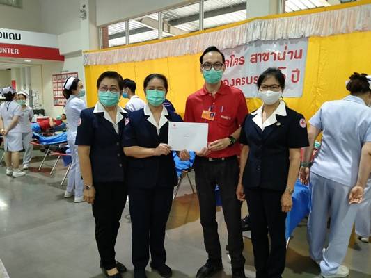 วันที่ 23 มีนาคม 2564 นางประภา บุญหลวง นายกเหล่ากาชาดจังหวัดน่าน มอบหมายให้คณะกรรมการและสมาชิกเหล่ากาชาดจังหวัดน่าน ร่วมกับโรงพยาบาลน่าน และบริาัทสยามแมคโคร จำกัด สาขาน่าน ออกหน่วยรับบริจาคโลหิต ณ แมคโคร สาขาน่าน มีผู้บริจาคโลหิต จำนวน 63 ราย ได้ปริมาณโลหิต ทั้งสิ้น 22,050 มิลลิลิตร
