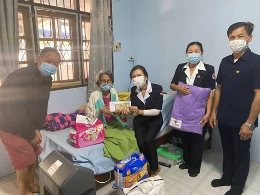 วันที่ 4 มกราคม 2564 นางรชยา ภูมิสวัสดิ์ นายกเหล่ากาชาดจังหวัดกาญจนบุรี และคณะ ลงพื้นที่ตรวจเยี่ยมช่วยเหลือให้กำลังใจผู้ป่วยที่ยากไร้ ช่วยเหลือตัวเองไม่ได้ ในเขตพื้นที่ อำเภอเมืองกาญจนบุรี จำนวน 2 ราย โดยเหล่ากาชาดจังหวัดกาญจนบุรี ได้มอบเครื่องอุปโภค – บริโภค จำนวน 2 ชุด ผ้าห่ม 2 ผืน ผ้าอ้อมสำหรับผู้ใหญ่ และเงินช่วยเหลือเบื้องต้น จำนวน 2 รายๆละ 3,000 บาท รวมเป็นเงิน 6,000 บาท