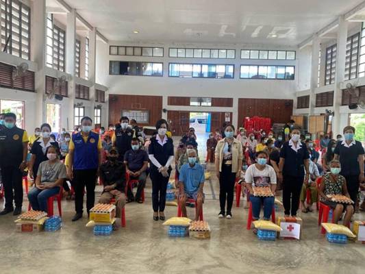 วันที่ 10 มิถุนายน 2564 นางรชยา ภูมิสวัสดิ์ นายกเหล่ากาชาดจังหวัดกาญจนบุรี นางสาวกิตติยา จึงรุ่งเจริญกิจ รองนายกเหล่ากาชาดจังหวัดกาญจนบุรี นางพวงพยอม ศรีสันต์ ผู้ช่วยนายกเหล่ากาชาดจังหวัดกาญจนบุรี กรรมการ/ที่ปรึกษา/สมาชิกเหล่ากาชาดจังหวัดกาญจนบุรี ลงพื้นที่ ตำบลหนองปรือ และ ตำบลสมเด็จเจริญ อำเภอหนองปรือ จังหวัดกาญจนบุรี โดยมีนายสุทธิพร ศิวเวทพิกุล นายอำเภอหนองปรือ ให้การต้อนรับ โดยเหล่ากาชาดจังหวัดกาญจนบุรี/แม่บ้านมหาดไทยจังหวัดกาญจนบุรี ได้มอบครื่องอุปโภค – บริโภค จำนวน 100 ชุด (ข้าวสาร 5 กก. ไข่ไก่ 30 ฟอง บะหมี่กึ่งสำเร็จรูป 30 ซอง น้ำดื่ม 12 ขวด) ให้กับประชาชนที่ได้รับผลกระทบในช่วงการแพร่ระบาดของเชื้อไวรัสโควิด – 19 กับประชาชนที่ได้รับผลกระทบในช่วงการแพร่ระบาดของเชื้อไวรัสโควิด – 19