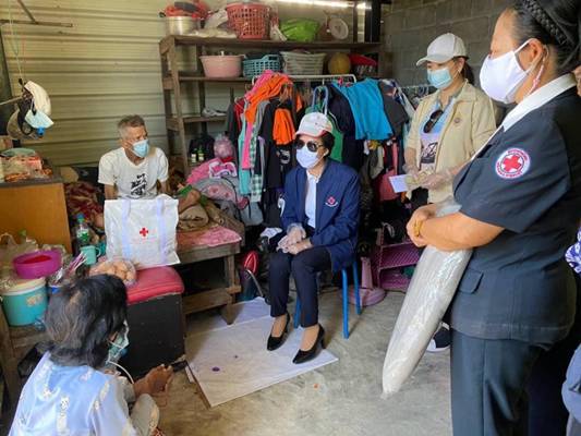 วันที่ 14 พฤษภาคม 2564 นางรชยา ภูมิสวัสดิ์ นายกเหล่ากาชาดจังหวัดกาญจนบุรี นางสาวกิตติยา จึงรุ่งเจริญกิจ รองนายกเหล่ากาชาดจังหวัดกาญจนบุรี นางพวงพยอม ศรีสันต์ ผู้ช่วยนายกเหล่ากาชาดจังหวัดกาญจนบุรี กรรมการ/ที่ปรึกษา/สมาชิกเหล่ากาชาดจังหวัดกาญจนบุรี ได้ลงพื้นที่เยี่ยมผู้ป่วยติดเตียง ผู้พิการ ผู้สูงอายุ ยากไร้ ในเขตอำเภอเมืองกาญจนบุรี ดังนี้ (1) หมู่บ้านคุณแม่ลำใย” จำนวน 3 ราย (2)ในหมู่บ้านสัมพันธ์นิเวศ จำนวน 2 ราย รวมทั้งสิ้น 5 ราย โดยเหล่ากาชาดจังหวัดกาญจนบุรี ได้มอบเครื่องอุปโภค – บริโภค จำนวน 5 ชุด ผ้าห่ม 5 ผืน และเงินช่วยเหลือเบื้องต้น จำนวน 3,000 บาท/3 ราย ,จำนวน 5,000 บาท/2 ราย รวมเป็นเงินทั้งสิ้น 19,000 บาท พร้อมทั้งได้มอบหน้ากากอนามัยให้กับ จนท. อสม. เพื่อไว้ใช้ในการปฏิบัติงานในช่วงการแพร่ระบาดของเชื้อไวรัสโควิด -19