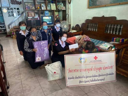 วันที่ 11 พฤษภาคม 2564 นางรชยา ภูมิสวัสดิ์ นายกเหล่ากาชาดจังหวัดกาญจนบุรี พร้อมด้วยนางพวงพยอม ศรีสันต์ ผู้ช่วยนายกเหล่ากาชาดจังหวัดกาญจนบุรี กรรมการ/ที่ปรึกษา/สมาชิกเหล่ากาชาดจังหวัด/ลงพื้นที่ตรวจเยี่ยมให้กำลังใจ และให้ความช่วยเหลือผู้สูงอายุ สมาขิกเหล่ากาชาดรุ่นแรกของจังหวัดกาญจนบุรี ซึ่งป่วยนอนติดบ้านเนื่องจากผ่าตัดต้อกระจกตาทั้งสองข้าง และโรคข้อเข่าเสื่อม จำนวน 2 ราย ในเขตอำเภอเมืองกาญจนบุรี เหล่ากาชาดจังหวัดกาญจนบุรี ได้มอบเครื่องอุปโภค – บริโภค 2 ชุด ผ้าห่ม 2 ผืน เงินช่วยเหลือ จำนวน 6,000 บาท และหลังจากนั้นลงพื้นที่ผู้ป่วยมะเร็งระยะสุดท้าย จำนวน 1 ราย ในเขตพื้นที่ตำบลเขาน้อย อำเภอท่าม่วง จังหวัดกาญจนบุรี โดยมี นายฑรัล เหลืองสะอาด ท่านนายอำเภอท่าม่วง,เสมียนตราอำเภอท่าม่วง จนท.อำเภอท่าม่วง และ จนท. ที่เกี่ยวข้องทุกท่าน ให้การต้อนรับร่วมลงพื้นที่ด้วย เหล่ากาชาดจังหวัดกาญจนบุรี ได้มอบเครื่องอุปโภค – บริโภค 1 ชุด ผ้าห่ม 1 ผืน เงินช่วยเหลือ จำนวน 5,000 บาท