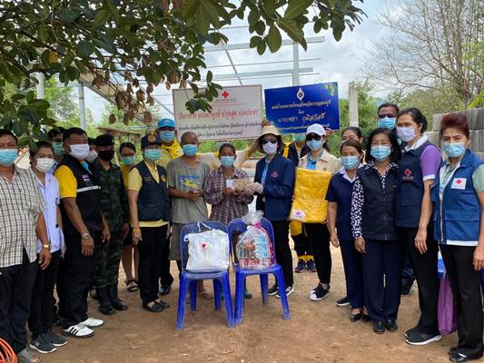 วันที่ 7 เมษายน 2564 นางรชยา ภูมิสวัสดิ์ นายกเหล่ากาชาดจังหวัดกาญจนบุรี พร้อมด้วยนางมัณทนา ชื่นตา รองนายกเหล่ากาชาดจังหวัดฯ นางสาวกิตติยา จึงรุ่งเจริญกิจ รองนายกเหล่ากาชาดจังหวัดฯ นางพวงพยอม ศรีสันต์ ผู้ช่วยนายกเหล่ากาชาดจังหวัดฯ และกรรมการ/ที่ปรึกษา/สมาชิกเหล่ากาชาดจังหวัดฯ ลงพื้นที่ตรวจเยี่ยมผู้ป่วยติดเตียง ผู้พิการ ผู้สูงอายุที่ยากไร้ จำนวน 11 ราย ผู้ประสบวาตภัย จำนวน 2 หลัง ในเขตพื้นที่ หมู่ 4,5,7 ตำบลจรเข้เผือก หมู่ 9,10 ตำบลด่านมะขามเตี้ย อำเภอด่านมะขามเตี้ยโดยมี นางสาวเพ็ญศรี กลั่นบุศย์ นายอำเภอด่านมะขามเตี้ย ปลัด เจ้าหน้าที่ อส. อำเภอด่านมะขามเตี้ย หน่วยงานในท้องที่ พัฒนาชุมชน สรรพกรพื้นที่ เกษตร สาธารณสุข สหกรณ์การเกษตร รพ.สต.บ้านไทรทอง กำนัน ผู้ใหญ่บ้าน อสม. อบต. จระเข้เผือก ชุดทหาร (ชป.กร.กกล.สุรสีห์) ร่วมลงพื้นที่ตรวจเยี่ยมด้วย ทั้งหมด จำนวน 13 ราย โดยมอบเครื่องอุปโภค – บริโภค จำนวน 13 ชุด ผ้าห่ม 13 ผืน และเงินช่วยเหลือเบื้องต้น รวมเป็นเงิน 41,000 บาท