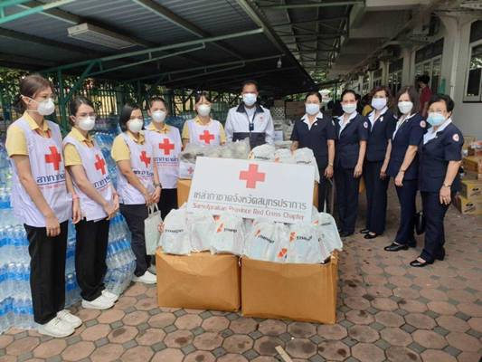 วันที่ 6 กรกฎาคม 2564 นางนงรัตน์ คงเกษม นายกเหล่ากาชาดจังหวัดสมุทรปราการ นางธารตะวัน จรูญพงศ์ รองนายกเหล่ากาชาดจังหวัดสมุทรปราการ นางณัฐิดา เจนนาวิน รองนายกเหล่ากาชาดจังหวัดสมุทรปราการ เเละคณะเหล่ากาชาดจังหวัด พร้อมด้วยนายเอกชลิต ผลสีทอง หัวหน้ากลุ่มงานบริหารและประสานกิจการเหล่ากาชาด ผู้แทนจากสภากาชาดไทย นางพาณี อรรณฆเดช หัวหน้าสถานีกาชาดที่ 5 สวางคนิวาส และเจ้าหน้าที่จากสำนักงานบรรเทาทุกข์และประชานามัยพิทักษ์ สภากาชาดไทยลงพื้นที่ ณ ศูนย์ช่วยเหลือประชาชนองค์การบริหารส่วนตำบลบางพลีใหญ่ เยี่ยมและให้กำลังใจประชาชนที่อพยพมาพักพิงชั่วคราว กรณีเหตุระเบิดภายในโรงงานหมิงตี้ เคมิคอล จำกัด มีผู้ได้รับผลกระทบจากเหตุการณ์ในครั้งนี้และเข้าพักในศูนย์อพยพทั้ง 7 แห่งจำนวน 1120 คน มีผู้ได้รับบาดเจ็บนำส่งโรงพยาบาลจำนวน 33 ราย เสียชีวิต 1 ราย (ข้อมูลจากสำนักงานป้องกันและบรรเทาสาธารณภัยจังหวัดสมุทรปราการ) ในการนี้ สำนักงานเหล่ากาชาดจังหวัดสมุทรปราการให้ความช่วยเหลือโดยสนับสนุนอาหารปรุงสุกจำนวน 300 กล่อง ขนมปัง จำนวน 100 ชิ้น สถานีกาชาดที่ 5 สวางคนิวาส มอบชุดสุขอนามัย (Hygiene kits) จำนวน 500 ชุด เพื่อมอบให้ผู้ที่ได้รับผลกระทบจากภัยครั้งนี้ณ องค์การบริหารส่วนตำบลบางพลีใหญ่ (หลังเก่า) ตำบลบางพลีใหญ่ อำเภอบางพลี จังหวัดสมุทรปราการ