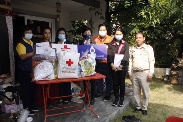 1. เหล่ากาชาดจังหวัดนนทบุรี มอบเงินช่วยเหลือเบื้องต้น 3,000 บาท พร้อมเครื่องอุปโภคบริโภค