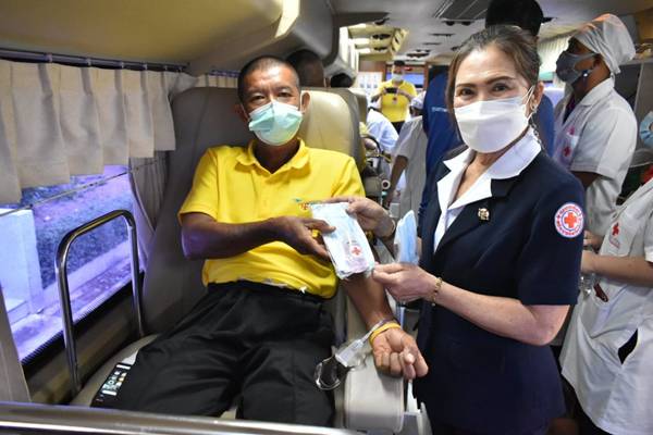 วันที่ 8 กรกฎาคม 2564 นางเตือนจิตร์ รักร้อย นายกเหล่ากาชาดจังหวัดอุทัยธานี นางสุพิศชา เพ็ญธัญกิจ นางศุภรินทร์ ภู่ระหงษ์ กรรมการเหล่ากาชาดจังหวัดอุทัยธานี ร่วมกับ ศูนย์บริการโลหิตแห่งชาติ สภากาชาดไทย ภาค 8 จังหวัดนครสวรรค์ และโรงพยาบาลอุทัยธานี ออกหน่วยรับบริจาคโลหิต ณ โรงงานวัตถุระเบิดทหาร อำเภอพยุหะคีรี ได้รับโลหิต จำนวน 50 ยูนิต คิดเป็นปริมาณ 22,450 ซีซี คิดเป็นปริมาณยอดสะสมโลหิตจำนวน 3,522,550 ซีซี มีผู้แสดงความจำนงบริจาคดวงตา 3 ราย คิดเป็นปริมาณยอดสะสมดวงตา จำนวน 609 ราย มีผู้แสดงความจำนงบริจาคอวัยวะ 3 ราย คิดเป็นปริมาณยอดสะสมอวัยวะ จำนวน 543 รายและนำแมสกับแอลกฮอล์แบบพกพามอบให้กับผู้บริจาคโลหิ