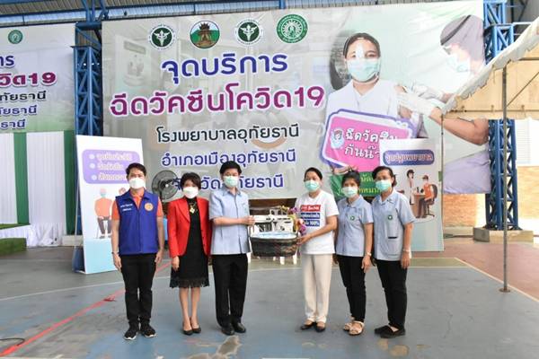 วันที่ 24 มิถุนายน 2564 นางเตือนจิตร์ รักร้อย นายกเหล่ากาชาดจังหวัดอุทัยธานี มอบหน้ากากอนามัยจากเหล่ากาชาดจังหวัดอุทัยธานี ให้แก่ นายสุรชัย โชคครรชิตไชย ผู้อำนวยการโรงพยาบาลอุทัยธานี นางตถาพร สิทธิสมาน ปลัดเทศบาลฯนายศุภโชค วินัยพานิช ปลัดอำเภอเมือง เจ้าหน้าที่ผู้ปฏิบัติงาน และประชาชนที่เดินทางมาฉีดวัคซีน ณ จุดบริการฉีดวัคซีนโควิด 19 เทศบาลเมืองอุทัยธานี