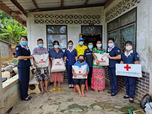โดยเหล่ากาชาดจังหวัดพังงาได้มอบถุงยังชีพ จำนวนครัวเรือนละ 1 ถุงไว้ใช้อุปโภคบริโภคในครัวเรือนเป็นการเบื้องต้น