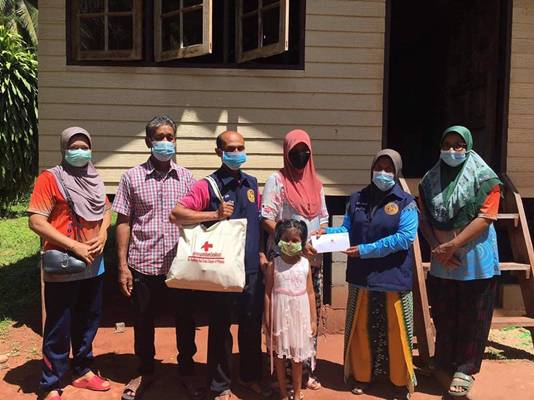 วันที่ 22 มิถุนายน 2564 นางวิภาดา ทิพญพงศ์ธาดา นายกเหล่ากาชาดจังหวัดพังงา มอบหมายให้นางสาวมารีนา เจ๊ะแม พยาบาลวิชาชีพ รพ.สต.เกาะหมากน้อย พร้อมด้วยนางพิมพิกา สระวารี ผู้ใหญ่บ้านเกาะหมากน้อย นายสมชัย มุ่งกิจ ผู้ช่วยผู้ใหญ่บ้าน นางไร่หนูน สัปรส อสม และนางมีนา กองสิน อสม. ลงเยี่ยมบ้านนางฮ้าลี่หม๊ะ ชำนาญสิน อายุ 46 ปี บ้านเลขที่ 55 หมู่ที่ 4 ตำบลเกาะหมากน้อย อำเภอเมืองพังงา จังหวัดพังงา ครอบครัวมีบุตร 4 คน รายได้ไม่เพียงพอ มีบุตรสาวต้องดูแล คือ เด็กหญิงชลธิชา ชำนาญสิน ซึ่งป่วยเป็นเนื้องอกในสมองต้องรักษาต่อเนื่องทุก 3 เดือน เหล่ากาชาดจังหวัดพังงา มอบเงินช่วยเหลือ 3,000.-บาท พร้อมถุงยังชีพ จำนวน 1 ถุง