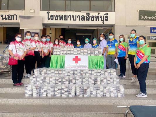 วันที่ 30มิถุนายน 2564 นางชุลีพร เตรัตน์เ นายกเหล่ากาชาดจังหวัดสิงห์บุรี รองนายกเหล่ากาชาดจังหวัดสิงห์บุรี ผู้ช่วยนายกเหล่ากาชาดจังหวัดสิงห์บุรี และกรรมการเหล่ากาชาดจังหวัดสิงห์บุรี มอบข้าวไข่พะโล้(อาหารกล่อง)ให้แก่บุคลากรทางการแพทย์ในโรงพยาบาลสิงห์บุรี และสำนักงานสาธารณสุขจังหวัดสิงห์บุรี รวมจำนวน 1,020 กล่อง เพื่อเป็นการให้กำลังใจแก่บุคลากรทางการแพทย์และเจ้าหน้าที่สาธารณสุขที่ต้องทำหน้าที่อย่างหนัก ณ โรงพยาบาลสิงห์บุรี และสำนักงานสาธารณสุขจังหวัดสิงห์บุรี ทั้งนี้ เหล่ากาชาดจังหวัดสิงห์บุรีขอขอบคุณโรงสีเปี่ยมสินสมบูรณ์ที่สนับสนุนข้าวสาร ในการที่ทำกิจกรรมในครั้งนี้