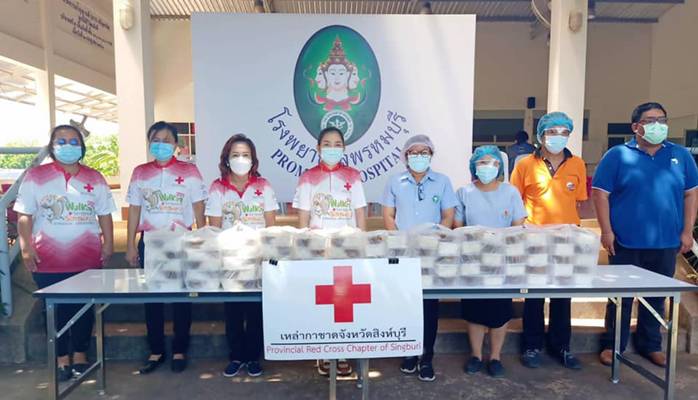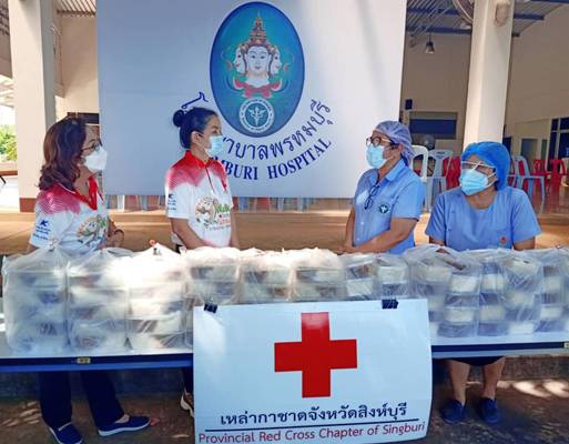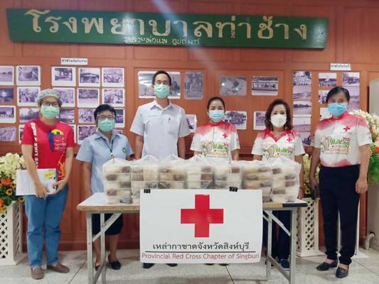 วันที่ 1 กรกฎาคม 2564 นางชุลีพร เตรัตน์ นายกเหล่ากาชาดจังหวัดสิงห์บุรี และผู้ช่วยนายกเหล่ากาชาดจังหวัดสิงห์บุรี มอบข้าวไข่พะโล้(อาหารกล่อง)ให้แก่บุคลากรทางการแพทย์ พยาบาล และเจ้าหน้าที่ ในโรงพยาบาลค่ายบางระจัน โรงพยาบาลท่าช้าง และโรงพยาบาลพรหมบุรี ดังนี้