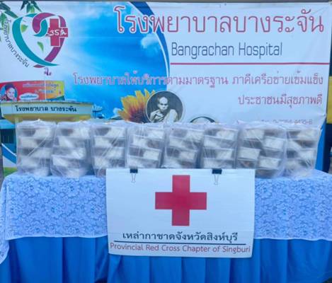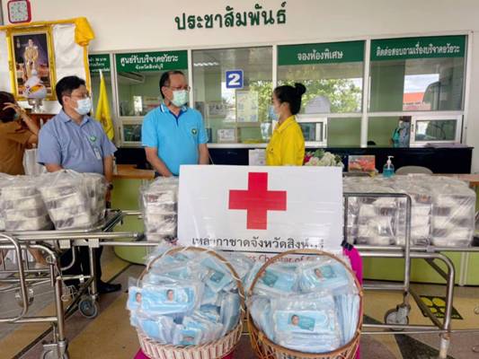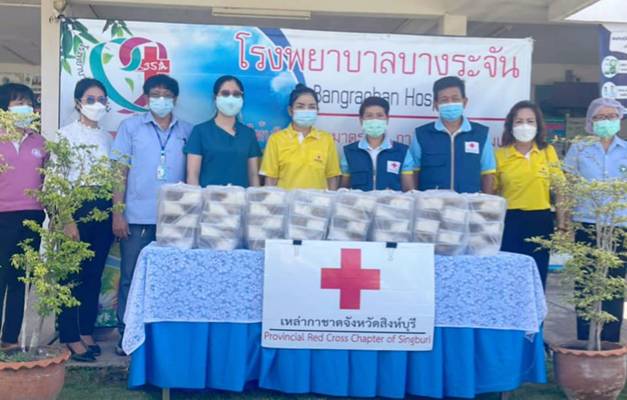 เพื่อเป็นการให้กำลังใจแก่บุคลากรทางการแพทย์และเจ้าหน้าที่สาธารณสุขที่ต้องทำหน้าที่อย่างหนัก ทั้งนี้ เหล่ากาชาดจังหวัดสิงห์บุรี ขอขอบคุณโรงสีเปี่ยมสินสมบูรณ์ที่สนับสนุนข้าวสารในการทำกิจกรรมครั้งนี้ และสำนักงานพัฒนาสังคมและความมั่นคงของมนุษย์จังหวัดสิงห์บุรีร่วมบริจาคหน้ากากอนามัย จำนวน 300 แพ็ค(แพ็คละ 10 ชิ้น)
