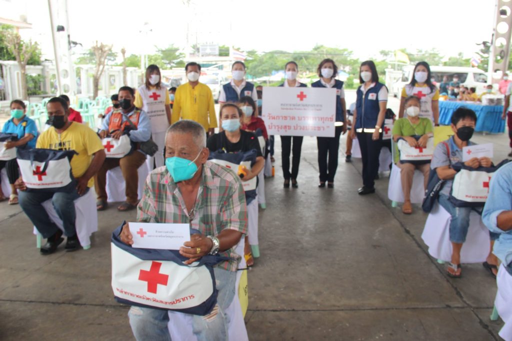 วันที่ 15 กรกฎาคม 2564 นางนงรัตน์ คงเกษม นายกเหล่ากาชาดจังหวัดสมุทรปราการ นางณัฐิดา เจนนาวิน รองนายกเหล่ากาชาดจังหวัดสมุทรปราการ พร้อมคณะเหล่ากาชาดจังหวัด ร่วมกับอำเภอบางบ่อ จัดกิจกรรม ” วันกาชาดบรรเทาทุกข์ บำรุงสุข ปวงประชา ” ร่วมพบปะพูดคุยเเละมอบเงินสงเคราะห์ช่วยเหลือพร้อมมอบถุงยังชีพเเก่ผู้ยากไร้ ผู้พิการ ผู้ด้อยโอกาส จำนวน 21 ราย (มอบเงินรายละ 2,000 บาท) ในกิจกรรมมีมาตรการป้องกันการแพร่ระบาดของ Covid-19 อย่างเคร่งครัด โดยเว้นระยะห่าง ตรวจวัดอุณหภูมิ บริการเจลแอลกอฮอล์ทุกจุด ณ เทศบาลตำบลบางบ่อ อำเภอบางบ่อ จังหวัดสมุทรปราการ