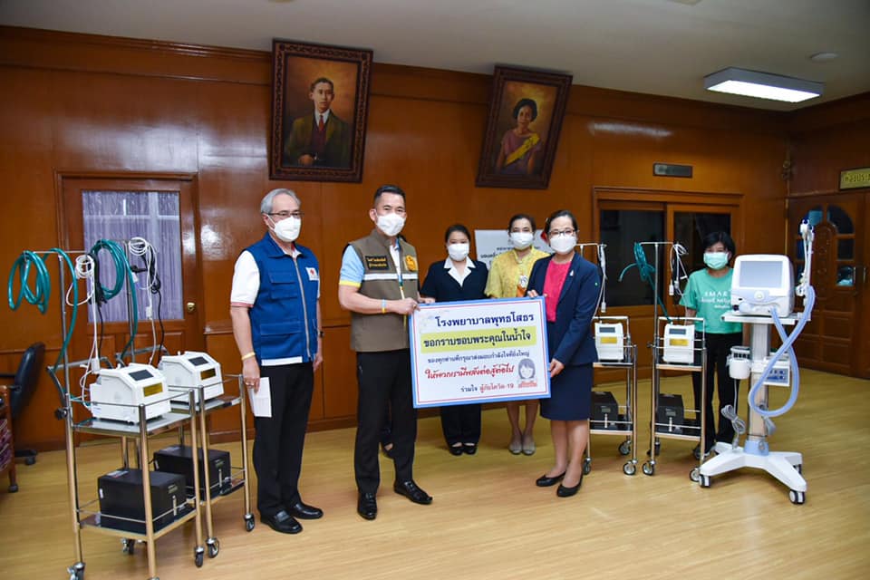 ให้แก่แพทย์หญิงสมบัติ ชุติมานุกูล ผู้อำนวยการโรงพยาบาลพุทธโสธร เพื่อให้โรงพยาบาลได้มีอุปกรณ์ เครื่องมือที่สามารถดูแลรักษาและลดอัตราการเสียชีวิตของผู้ป่วยในสถานการณ์การแพร่ระบาดของโรคโควิด-19 ได้อย่างมีประสิทธิภาพ รวมทั้งเป็นการให้บริการและพัฒนาคุณภาพชีวิตของพี่น้องประชาชนชาวจังหวัดฉะเชิงเทราได้อย่างทั่วถึง ณ โรงพยาบาลพุทธโสธร