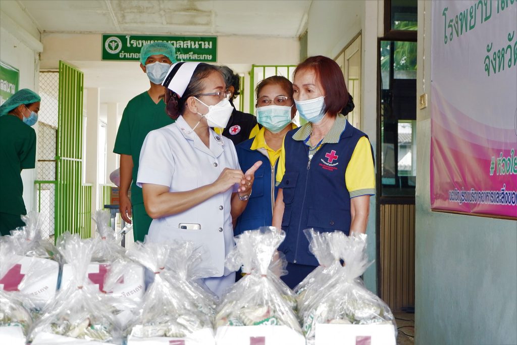 วันที่ 17 สิงหาคม 2564 คณะกรรมการและสมาชิกกิ่งกาชาดอำเภอขุขันธ์ มอบถุงยังชีพ และชุดธารน้ำใจ จำนวน 180 ชุด สำหรับผู้ป่วยติดเชื้อไวรัสโคโรนา 2019 (COVID-19) ที่รับประทานอาหารได้น้อยหรือรับประทานอาหารไม่ได้ในระหว่างที่เข้ารับการรักษาตัวอยู่โรงพยาบาลสนาม ณ ศูนย์สุขภาพชุมชนเมืองห้วยเหนือ ตำบลห้วยเหนือ อำเภอขุขันธ์ จังหวัดศรีสะเกษ โดยได้รับการสนับสนุนถุงยังชีพและชุดธารน้ำใจในครั้งนี้ จากสำนักงานเหล่ากาชาดจังหวัดศรีสะเกษ