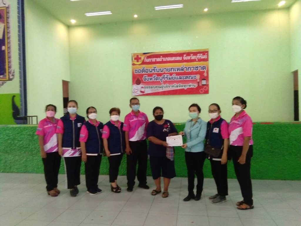 วันที่ 15 กรกฎาคม 2564 เหล่ากาชาดจังหวัดบุรีรัมย์ ร่วมกับศูนย์บริการโลหิตโรงพยาบาลบุรีรัมย์ ออกหน่วยรับบริจาคโลหิต ณ หอประชุมโรงเรียนแคนดงพิทยาคม อำเภอแคนดง จังหวัดบุรีรัมย์ มีผู้บริจาคโลหิต จำนวน 181 ราย ได้โลหิต จำนวน 72,400 ซี.ซี. ดวงตา จำนวน 2 ราย และอวัยวะ จำนวน 2 ราย