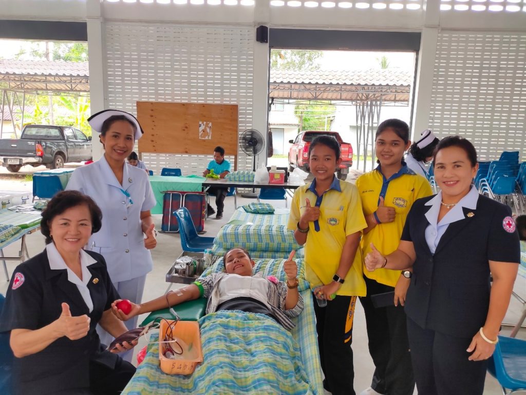 รองนายกเหล่ากาชาดจังหวัดพัทลุง พร้อมด้วยกรรมการและสมาชิกเหล่ากาชาดจังหวัดพัทลุง ออกรับบริจาคโลหิต ดวงตา และอวัยวะ โครงการ “Plus 1 เพิ่มจำนวนครั้ง เพิ่มโลหิต