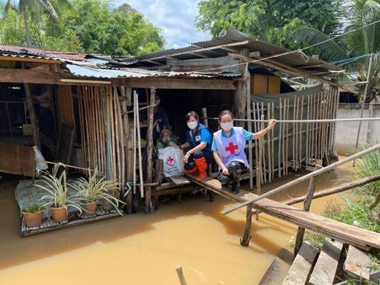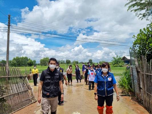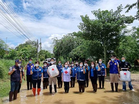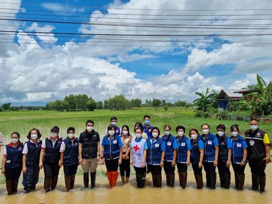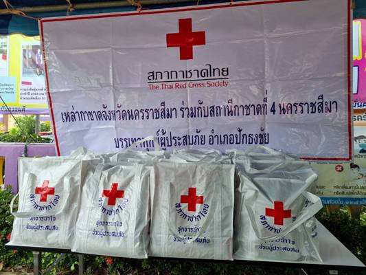 วันที่ 10 กันยายน 2564 นางสายชล บุญอรณะ นายกเหล่ากาชาดจังหวัดนครราชสีมา คณะกรรมการและสมาชิกเหล่ากาชาดจังหวัดนครราชสีมา และกอ.รมน.จว.นครราชสีมา ลงพื้นที่ออกเยี่ยมให้กำลังใจและมอบถุงชุดธารน้ำใจให้แก่ชาวบ้านที่ประสบอุทกภัย จำนวน 53 ครัวเรือน ในพื้นที่บ้านใหม่สะแกราช ม.15 ต.สะแกราช อ.ปักธงชัย จ.นครราชสีมา โดยมีนายบัลลังก์ ไวทย์ศิริ นายอำเภอปักธงชัย/นายกกิ่งกาชาดอำเภอปักธงชัยและคณะกรรมการกิ่งกาชาดอำเภอปักธงชัย กำนันผู้ใหญ่บ้านฯตำบลสะแกราชร่วมให้การต้อนรับ