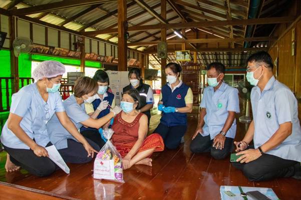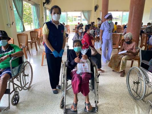 วันที่ 13 กันยายน 2564 ณ ศาลาการเปรียญวัดนาเกลือ ต.ชำราก อ.เมืองตราด สำนักงานสาธารณสุขอำเภอเมืองตราด ร่วมกับโรงพยาบาลตราด ให้บริการฉีดวัคซีนป้องกันโควิด – 19 เชิงรุก สำหรับประชาชนกลุ่ม 608 ในพื้นที่ 3 ตำบล ได้แก่ ต.แหลมกลัด ต.ตะกาง และ ต.ชำราก โดยมีผู้เดินทางมารับบริการมากกว่า 380 ราย และได้ดำเนินการฉีดวัคซีนให้ผู้ป่วยติดเตียงติดบ้าน จำนวน 5 ราย เหล่ากาชาดจังหวัดตราด นำโดยนางบุณณฎา เทพวรชัย รองนายกเหล่ากาชาดจังหวัดตราด และคณะกรรมการเหล่ากาชาดจังหวัดตราด ได้นำชุดกาชาดปันสุขมอบให้กับกลุ่มเปราะบางที่เข้ารับการฉีดวัคซีน จำนวน 378 ชุด ภายใต้กิจกรรมกาชาดปันสุขเคลื่อนที่เพื่อบรรเทาความเดือดร้อนในสถานการณ์การแพร่ระบาดของโรคติดเชื้อไวรัสโคโรนา 2019