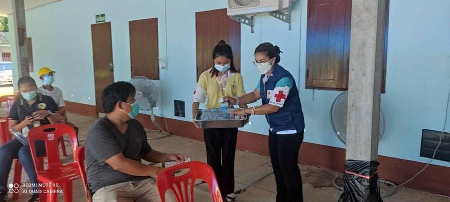 วันที่ 18 สิงหาคม 2564 นายวรพันธุ์ สุวัณณุสส์ ผู้ว่าราชการจังหวัดปราจีนบุรี/ประธานที่ปรึกษาคณะกรรมการเหล่ากาชาดจังหวัดปราจีนบุรี และ นางมัทนา สุวัณณุสส์ นายกเหล่ากาชาดจังหวัดปราจีนบุรี มอบหมายให้ นายวิธรัช รามัญ นายอำเภอประจันตคาม พร้อมด้วย นางรมิดา รามัญ คณะกรรมการเหล่ากาชาดจังหวัดปราจีนบุรี ผอ.ศอ.จอส.อ.ประจันตคาม ปลัดอำเภอประจันตคาม จิตอาสาอ.ประจันตคาม อาสาสมัครสภากาชาดไทย และสมาชิกอส.อ.ประจันตคาม ร่วมอำนวยความสะดวกในการให้บริการฉีดวัคซีนสร้างภูมิคุ้มกันโรคโควิด – 19 แก่ประชาชน จำนวน 457 ราย และให้ความรู้การปฏิบัติตัวหลังการฉีดวัคซีนและอาการไม่พึงประสงค์ รวมถึงเน้นย้ำการป้องกันตนเองตามมาตรการ D-M-H-T-T พร้อมทั้งมอบน้ำดื่ม จำนวน 200 โหล ให้กับหน่วยบริการฉีดวัคซีน ณ ห้องประชุมสร้อยคีรี โรงพยาบาลประจันตคาม อ.ประจันตคาม จ.ปราจีนบุรี