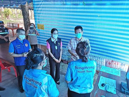 วันที่ 17 สิงหาคม 2564 นายวรพันธุ์ สุวัณณุสส์ ผู้ว่าราชการจังหวัดปราจีนบุรี ประธานที่ปรึกษาคณะกรรมการเหล่ากาชาดจังหวัดปราจีนบุรี พร้อมด้วย นางมัทนา สุวัณณุสส์ นายกเหล่ากาชาดจังหวัดปราจีนบุรี ปลัดจังหวัดปราจีนบุรี และนายอำเภอศรีมหาโพธิ ตรวจเยี่ยมให้กำลังใจและมอบเครื่องดื่มให้แก่ บุคลากรทางการแพทย์ นายก อบต.หนองโพรง กำนัน ผู้ใหญ่บ้าน และทีมงาน ที่ร่วมกันจัดตั้งศูนย์พักคอยตำบลหนองโพรง แห่งที่ 1 และแห่งที่ 2 สำหรับเป็นที่ดูแลรักษาผู้ป่วยจากโรคติดเชื้อไวรัสโคโรน่า2019 (COVID-19) และเพื่อป้องกันการแพร่ระบาดในพื้นที่ ณ วัดระเบาะไผ่ และโรงเรียนวัดระเบาะไผ่ ตำบลหนองโพรง อำเภอศรีมหาโพธิ จังหวัดปราจีนบุรี ทั้งนี้ ผู้ว่าราชการจังหวัดปราจีนบุรี ได้สอบถามถึงปัญหาอุปสรรคในการปฏิบัติงาน และแนะนำแนวทางในการจัดการขยะติดเชื้อ