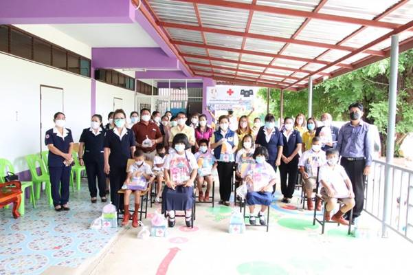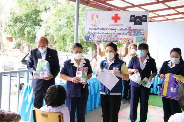 วันที่ 9 กันยายน 2564 นางสุกัญญา ชุมอุปการ นายกเหล่ากาชาดจังหวัดนครสวรรค์ มอบหมายให้ นางวิยดา พลับน้อย รองนายกเหล่ากาชาดจังหวัดนครสวรรค์ ลงพื้นที่ร่วมกับ นายสมบุญ วงศ์วัชรานนท์ นายอำเภอท่าตะโก และคณะกรรมการสมาชิกกิ่งกาชาดอำเภอท่าตะโก เพื่อมอบ “ถุงยังชีพการศึกษา เสริมปัญญาเยาวชน” ตามโครงการส่งเสริมและพัฒนาการพูด อ่าน เขียนภาษาไทย ของเหล่ากาชาดจังหวัดนครสวรรค์ ให้กับนักเรียนและเยาวชนที่มีฐานะยากจน ครอบครัวมีรายได้ไม่เพียงพอ เพื่อเป็นการส่งเสริมการศึกษาด้านการพูด อ่าน และเขียนภาษาไทย ซึ่งในการนี้ เหล่ากาชาดจังหวัดนครสวรรค์ มอบถุงยังชีพการศึกษา เสริมปัญญาเยาวชน 1 ชุด ประกอบด้วย กระเป๋าเป้ ชุดเครื่องเขียน สมุดภาพ สี แบบฝึกหัด เมล็ดพันธุ์ผัก หน้ากากอนามัยและสเปรย์แอลกอฮอล์ เพื่อช่วยรณรงค์ การป้องกันการแพร่ระบาดของโรคโควิด-19 รวมทั้งนมกล่อง แก้วน้ำ กล่องใส่อาหาร และอาหารกลางวัน จำนวน 11 ชุด ให้กับนักเรียนฯ ในเขตพื้นที่การศึกษาประถมศึกษานครสวรรค์ เขต 3 ณ โรงเรียนวัดสายลำโพงเหนือ อำเภอท่าตะโก จังหวัดนครสวรรค์
