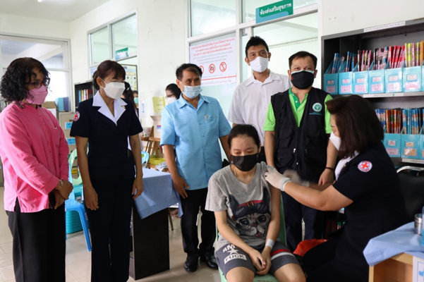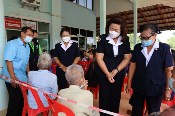 วันที่ 17 กันยายน 2564 นายกเหล่ากาชาดจังหวัดสุโขทัย พร้อมด้วยนายอำเภอคีรีมาศ สาธารณสุขอำเภอคีรีมาศและกาชาดอำเภอคีรีมาศ ลงพื้นที่ตรวจเยี่ยมและให้กำลังใจ การฉีดวัคซีนป้องกันโรคโควิค 19 ให้กับประชาชน ที่ลงทะเบียนผ่านแอปพลิเคชั่นหมอพร้อมสำหรับกลุ่มผู้มีอายุ 60 ปีขึ้นไป กลุ่มผู้ป่วย 7 โรคเรื้อรัง และให้กำลังใจเจ้าหน้าที่ที่ปฏิบัติงานณ โรงพยาบาลส่งเสริมสุขภาพตำบลบ้านน้ำพุ อำเภอคีรีมาศ จังหวัดสุโขทัย