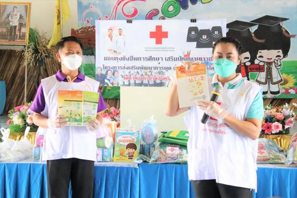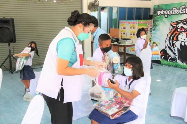 วันที่ 25 สิงหาคม 2564 นางสุกัญญา ชุมอุปการ นายกเหล่ากาชาดจังหวัดนครสวรรค์ พร้อมคณะลงพื้นที่มอบ “ถุงยังชีพการศึกษา เสริมปัญญาเยาวชน” ตามโครงการส่งเสริมและพัฒนาการพูด อ่าน เขียนภาษาไทย ของเหล่ากาชาดจังหวัดนครสวรรค์ ให้กับนักเรียนและเยาวชนที่มีฐานะยากจน ครอบครัวมีรายได้ไม่เพียงพอ เพื่อเป็นการส่งเสริมการศึกษาด้านการพูด อ่าน และเขียนภาษาไทย ซึ่งในการนี้ เหล่ากาชาดจังหวัดนครสวรรค์ มอบถุงยังชีพการศึกษา เสริมปัญญาเยาวชน 1 ชุด ประกอบด้วย กระเป๋าเป้ ชุดเครื่องเขียน สมุดภาพ สี แบบฝึกหัด เมล็ดพันธุ์ผัก หน้ากากอนามัยและสเปรย์แอลกอฮอล์ เพื่อช่วยรณรงค์ การป้องกันการแพร่ระบาดของโรคโควิด-19 รวมทั้งนมกล่อง แก้วน้ำ กล่องใส่อาหาร และชุดอาหารกลางวันพร้อมน้ำดื่ม จำนวน 15 ชุด ให้กับนักเรียนฯ ในเขตพื้นที่การศึกษาประถมศึกษานครสวรรค์ เขต 1 ณ โรงเรียนวัดมหาโพธิใต้ อำเภอเก้าเลี้ยว จังหวัดนครสวรรค์