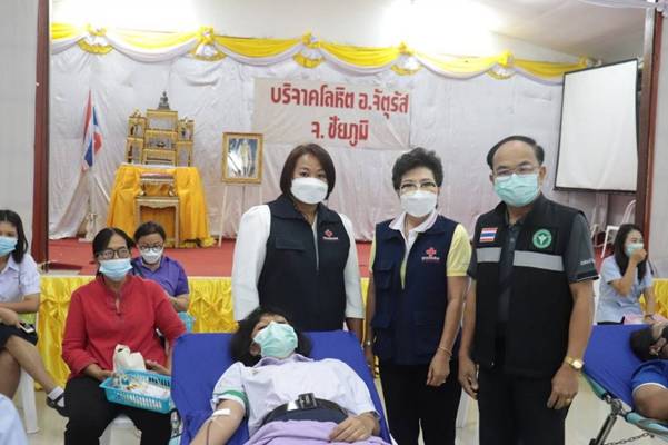 วันที่ 7 กันยายน 2564 นางณัฏฐินีภรณ์ จันทรโณทัย นายกเหล่ากาชาดจังหวัดชัยภูมิ มอบหมายให้คณะกรรมการเหล่ากาชาดจังหวัดชัยภูมิ ร่วมกับ โรงพยาบาลชัยภูมิ ออกหน่วยรับบริจาคโลหิต ดวงตา และอวัยวะ ณ หอประชุมที่ว่าการอำเภอจัตุรัส มีผู้เข้าร่วมกิจกรรม จำนวน 127 คน ได้โลหิตจำนวน 105 คน/ยูนิต ไม่มีผู้แสดงความจำนงบริจาคดวงตา และบริจาคอวัยวะ