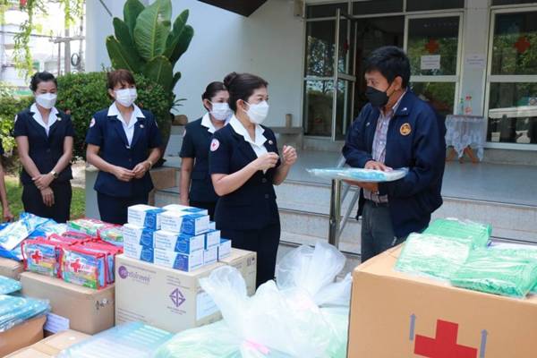 วันที่ 17 กันยายน 2564 นางอุรสา จินโต นายกเหล่ากาชาดจังหวัดสุราษฎร์ธานี พร้อมด้วยรองนายกเหล่ากาชาดจังหวัดสุราษฎร์ธานีที่ปรึกษาฯ และสมาชิกเหล่ากาชาดจังหวัดสุราษฎร์ธานีร่วมมอบอุปกรณ์ในการป้องกันการแพร่ระบาดของโรคโควิด-19ที่ได้รับการสนับสนุนจากสำนักงานบรรเทาทุกข์และประชานามัยพิทักษ์ สภากาชาดไทย ให้แก่ อำเภอบ้านนาเดิม เพื่อให้นำไปใช้ในการปฏิบัติงานป้องกันยับยั้งการแพร่ระบาดของโรคโควิด -19 ดังนี้