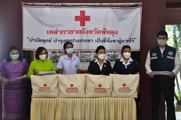 วันที่ 1 กันยายน 2564 นายกู้เกียรติ วงศ์กระพันธุ์ ผู้ว่าราชการจังหวัดพัทลุง มอบหมายให้นางปราณี รัตนประยูร รองผู้ว่าราชการจังหวัดพัทลุง พร้อมด้วยนางมะลิ วงศ์กระพันธุ์ นายกเหล่ากาชาดจังหวัดพัทลุง/กรรมการสภากาชาด ผู้แทนภาค 12 แพทย์หญิงอภิญญา เพ็ชรศรี ตัวแทนนายแพทย์สาธารณสุขจังหวัดพัทลุง เจ้าหน้าที่สาธารณสุขจังหวัดพัทลุง ประชาสัมพันธ์จังหวัดพัทลุง กรรมการและสมาชิกเหล่ากาชาดจังหวัดพัทลุง มอบชุดอุปโภคบริโภคแก่ผู้ป่วยติดเชื้อไวรัสโคโรนา 2019 (COVID – 19) ที่รักษาตัวในโรงพยาบาลทั้ง 11 อำเภอ โรงพยาบาลสนาม จำนวน 228 ชุด โดยมอบให้สาธารณสุขจังหวัดพัทลุง นำไปแจกจ่ายให้แก่ผู้ที่ติดเชื้อไวรัสโคโรนา 2019 (COVID–19ณ อาคารศูนย์ศิลปาชีพ สำนักงานเหล่ากาชาดจังหวัดพัทลุง(บริเวณจวนผู้ว่าราชการจังหวัดพัทลุง) อำเภอเมืองพัทลุง จังหวัดพัทลุง