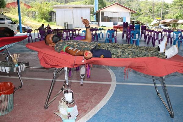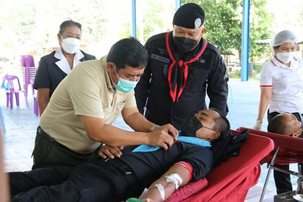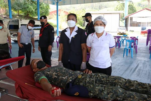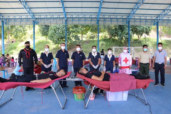 วันที่ 7 กันยายน 2564 นางโสรยา พานิชพงศ์ นายกเหล่ากาชาดจังหวัดยะลา มอบหมายให้ กรรมการ/สมาชิกเหล่ากาชาดจังหวัดยะลา ร่วมกับ โรงพยาบาลยะลา ออกหน่วยรับบริจาคโลหิต ณ ค่ายพระยาเดชานุชิต ตำบลวังพญา อำเภอรามัน จังหวัดยะลา มีผู้เข้าร่วมแสดงความจำนงบริจาคโลหิต จำนวน 50 ราย ผ่านการคัดกรองและสามารถบริจาคโลหิตได้ จำนวน 42 ราย ได้โลหิต 18,900 ซีซี เหล่ากาชาดจังหวัดยะลามอบหน้ากากอนามัยตราสัญลักษณ์สภากาชาดไทยให้ผู้เข้ารับบริจาคโลหิต ในโอกาสนี้ขอขอบคุณ นายอัมรัน บากา นายอำเภอกาบัง ผู้เกี่ยวข้องและผู้ร่วมบริจาคโลหิตทุกท่าน ที่มีส่วนร่วมในการสนับสนุนการบริจาคโลหิตในครั้งนี้