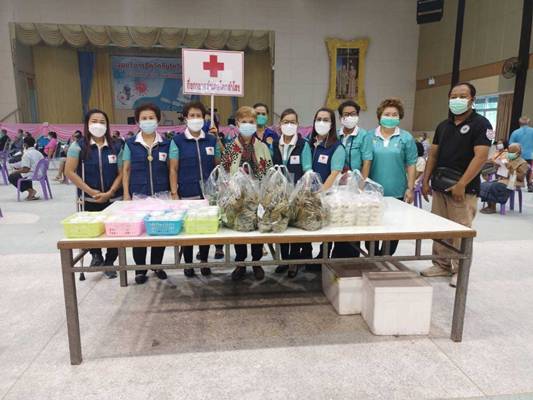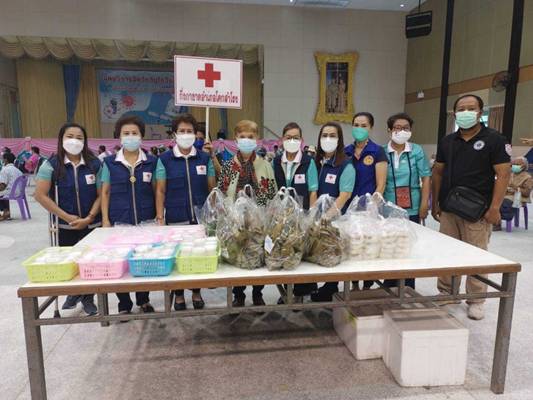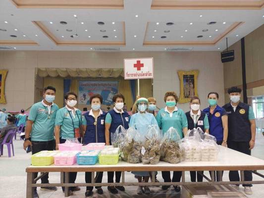 วันที่ 22 กันยายน 2564 ภายใต้การอำนวยการของ นางวัชราภรณ์ รุ่งสาคร นายกเหล่ากาชาดจังหวัดลพบุรี มอบหมายให้นายณรงค์ ชัยจำรัส นายอำเภอโคกสำโรง นางแสงอรุณ ชัยจำรัส นายกกิ่งกาชาดอำเภอโคกสำโรง กิ่งกาชาดอำเภอโคกสำโรง ร่วมจัดทำอาหารเป็นก๋วยเตี๋ยว และขนมไทย เพื่อนำไปมอบให้แก่ แพทย์ พยาบาล บุคลากรทางการแพทย์ เจ้าหน้าที่ในหน่วยงานที่เกี่ยวข้อง และจิตอาสาฯ ที่มารับบริการฉีดวัคซีนโควิด-19 ให้ประชาชน ณ อาคารอเนกประสงค์เทศบาลตำบลโคกสำโรง อำเภอโคกสำโรง จังหวัดลพบุรี