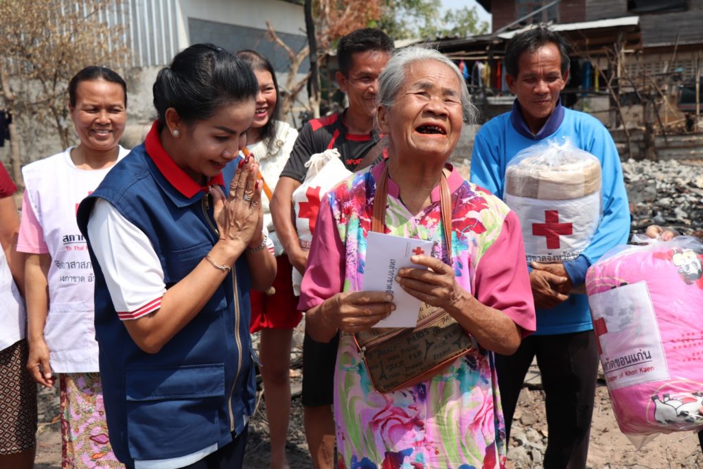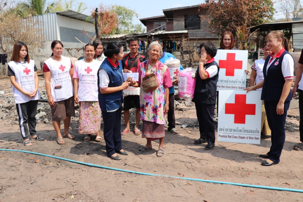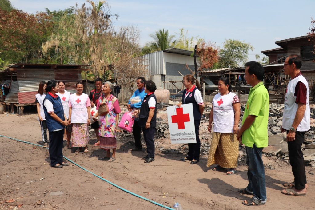 นายสมศักดิ์ จังตระกุล ผู้ว่าราชการจังหวัดขอนแก่น/นายกเหล่ากาชาดจังหวัดขอนแก่น มอบหมายให้นางวรารักษ์ รังษี นายกกิ่งกาชาดอำเภอบ้านไผ่ พร้อมคณะกรรมการและสมาชิกกิ่งกาชาดอำเภอบ้านไผ่ ออกบรรเทาทุกข์ นางบัวลอง วิริยะ บ้านเลขที่ 239 หมู่ที่ 5 ตำบลหินตั้ง อำเภอบ้านไผ่ จังหวัดขอนแก่น ที่ประสบอัคคีภัย เสียหายทั้งหลัง โดยมอบเงินช่วยเหลือ