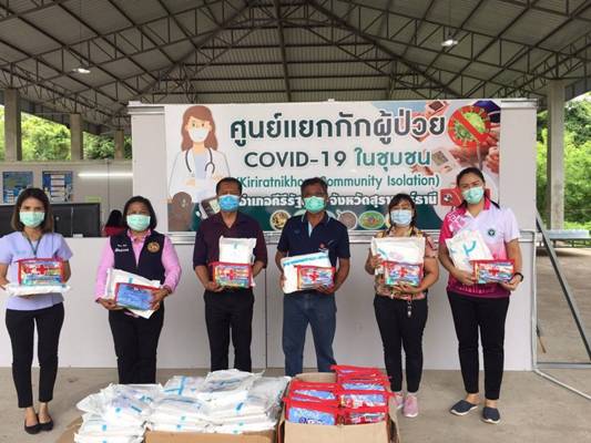 วันที่ 21 กันยายน 2564 นายชวลิต โรจนรัตน์ นายอำเภอคีรีรัฐนิคม หน.ศปก.อ.พร้อมด้วย นางสาวนัยนา ศักดาปลัดอำเภอหัวหน้ากลุ่มงานบริหารงานปกครองสาธารณสุขอำเภอ เจ้าหน้าที่สาธารณสุขได้ไปมอบชุดของใช้ส่วนตัว (Gift set) จำนวน 100 ชุดและชุด PPE จำนวน 100 ชุดซึ่งอำเภอฯ ได้รับการจัดสรรและสนับสนุนจากสำนักงานบรรเทาทุกข์และประชานามัยพิทักษ์ สภากาชาดไทยและ เหล่ากาชาดจังหวัดสุราษฎร์ธานี โดยวันนี้ ได้ไปมอบให้กับศูนย์พักคอย / สถานที่แยกกักกันในชุมชน(Community Isolation) อำเภอคีรีรัฐนิคม สถานที่ตั้ง ณ วัดสถิตคีรีรมย์ (วัดเขาราหู) หมู่ที่ 1 ตำบลย่านยาว อำเภอคีรีรัฐนิคม จังหวัดสุราษฎร์ธานี