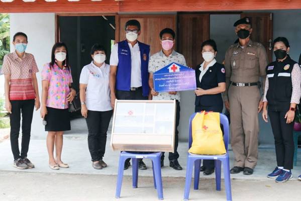 วันที่ 21 กันยายน พ.ศ. 2564 เวลา 12:15 น.นางอุรสา จินโต นายกเหล่ากาชาดจังหวัดสุราษฎร์ธานี พร้อมด้วยรองนายกเหล่ากาชาดจังหวัดสุราษฎร์ธานีกรรมการฯ ที่ปรึกษาฯ เหรัญญิกเหล่ากาชาดจังหวัดสุราษฎร์ธานีและสมาชิกเหล่ากาชาดจังหวัดสุราษฎร์ธานีได้ลงพื้นที่อำเภอชัยบุรี เพื่อมอบบ้านซ่อมแซมให้กับผู้ยากไร้ ในวันนี้ได้มอบให้ ราย นายเสริมศักดิ์ ด้วงทองกุลบ้านเลขที่ 7/3 หมู่ที่ 9 ตำบลสองแพรกอำเภอชัยบุรี จังหวัดสุราษฎร์ธานี โดย เหล่ากาชาดจังหวัดสุราษฎร์ธานีได้สนับสนุนงบประมาณ เป็นค่าวัสดุในการซ่อมแซมบ้านให้นายเสริมศักดิ์ฯ เป็นจำนวน 37,500 บาท และพร้อมนี้ ได้มีผู้ร่วมสนับสนุนค่าวัสดุอุปกรณ์ในการซ่อมแซมบ้าน อีกเป็นจำนวน 11,800 บาท ด้วย ในการนี้ เหล่ากาชาดจังหวัดสุราษฎร์ธานีได้มอบถุงยังชีพ จำนวน 1 ถุงและ สาธารณสุขอำเภอชัยบุรีได้มอบตู้ยาสามัญประจำบ้าน จำนวน 1 ตู้ ให้กับ นายเสริมศักดิ์ฯ ด้วย โดยมี นายสุกิจ มีพริ้ง นายอำเภอชัยบุรีพร้อมด้วย นางศรีเวียง มีพริ้งผอ.ศูนย์วิจัยและพัฒนาการเกษตร จว.สฏ./ภรรยานายอำเภอชัยบุรีปลัดอำเภอหัวหน้ากลุ่มงานบริหารงานปกครอง พัฒนาการอำเภอผู้ช่วยสาธารณสุขอำเภอ ผอ.รพ.สต.คลองน้อย ผอ.รพ.สต.สองแพรกกำนันตำบลสองแพรก ผู้ใหญ่บ้านหมู่ที่ 9 ตำบลสองแพรกและ อสม. ให้การต้อนรับ