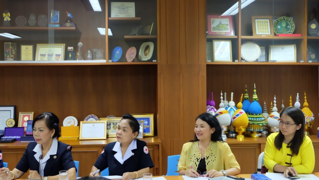 จังหวัดปทุมธานีและรองประธานแม่บ้านแม่บ้านมหาดไทยจังหวัดปทุมธานี พร้อมที่ปรึกษา คณะกรรมการและสมาชิกเหล่ากาชาดจังหวัดปทุมธานี และสมาชิกแม่บ้านมหาดไทย