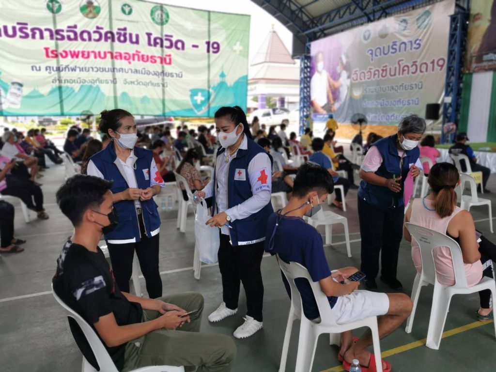 วันที่ 28 กันยายน 2564 นางปิติมา รักพานิชมณี นายกเหล่ากาชาดจังหวัดอุทัยธานี มอบหมายให้คณะกรรมการเหล่ากาชาดจังหวัดอุทัยธานี ลงพื้นที่ช่วยปฏิบัติงานร่วมกับหน่วยงานในพื้นที่บริการฉีดวัคซีนให้แก่ประชาชน โดยมีอาสาสมัครด้านทั่วไปร่วมปฏิบัติงานร่วมกับหน่วยงานจำนวน 3 ราย ณ จุดบริการฉีดวัคซีนโควิด-19 จังหวัดอุทัยธานี (ศูนย์เยาวชนเทศบาลเมืองอุทัยธานี)