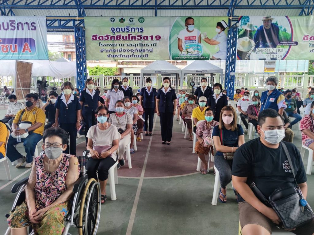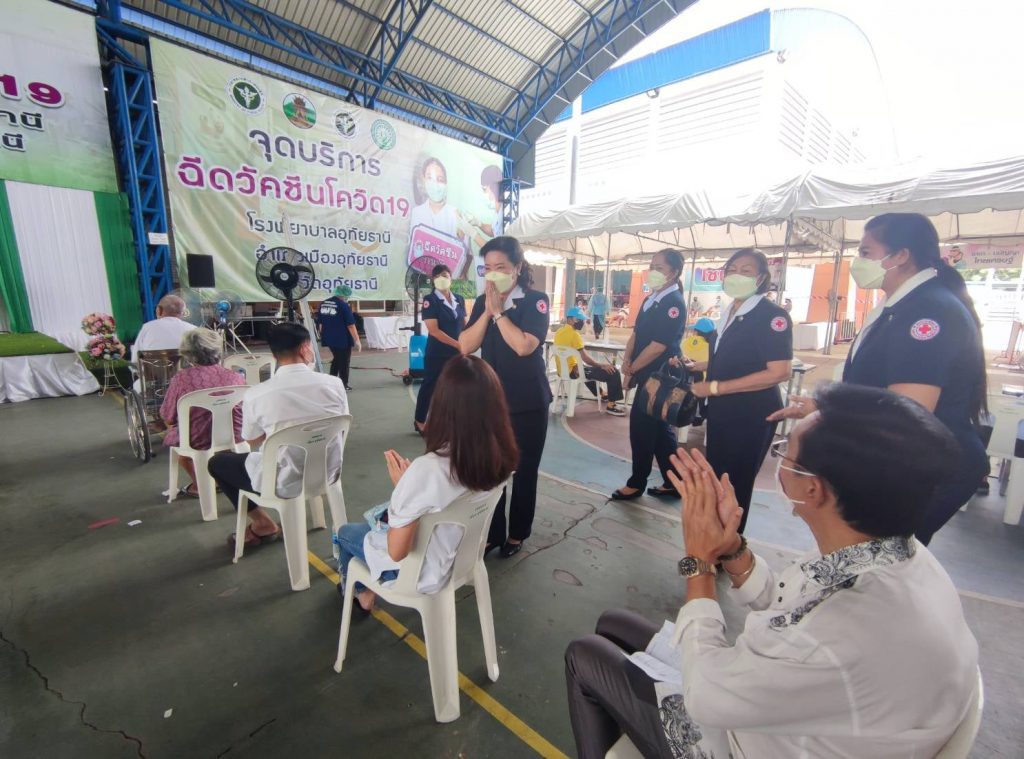 วันที่ 27 กันยายน 2564 นางปิติมา รักพานิชมณี นายกเหล่ากาชาดจังหวัดอุทัยธานีพร้อมด้วย คณะกรรมการเหล่ากาชาดจังหวัดอุทัยธานี มอบน้ำดื่ม จำนวน 70 แพ็ค และร่วมให้กำลังใจเจ้าหน้าที่ผู้ปฏิบัติงาน และประชาชนที่เดินทางมาฉีดวัคซีน ณ จุดบริการฉีดวัคซีนโควิด 19 เทศบาลเมืองอุทัยธานี
