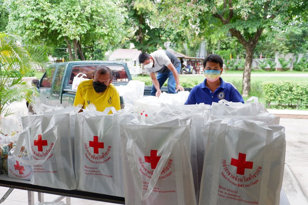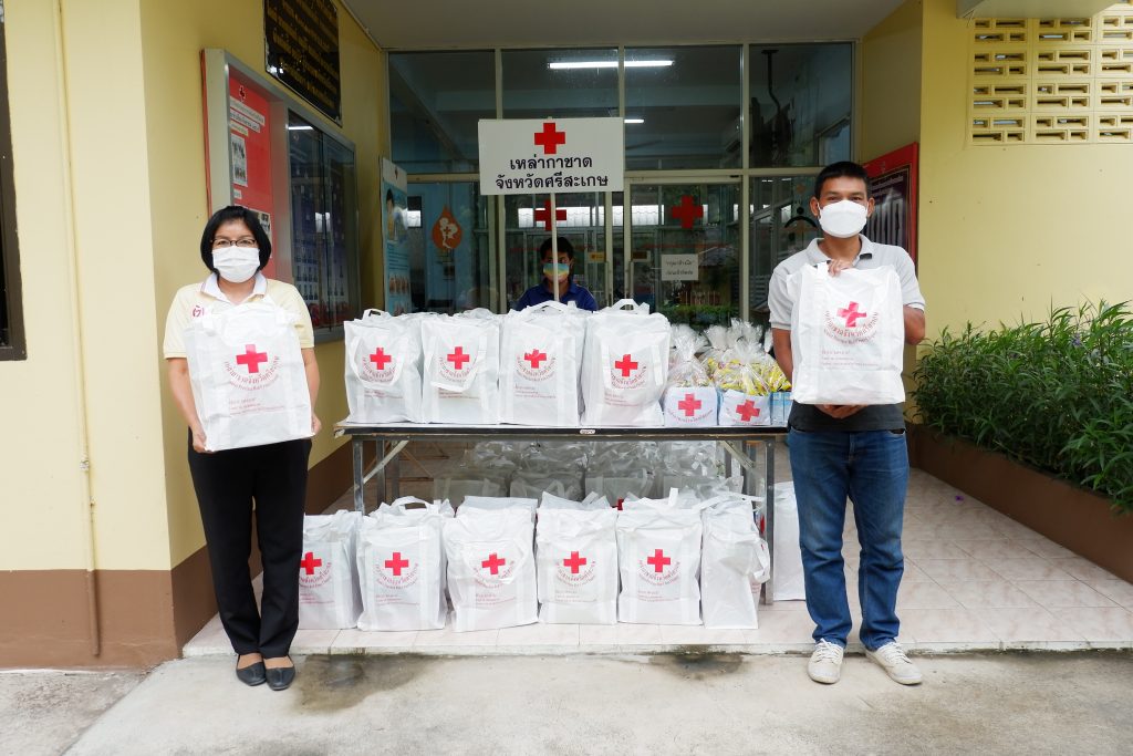 วันที่ 20 กันยายน 2564 นางมัลลิกา พุฒิชาติ นายกเหล่ากาชาดจังหวัดศรีสะเกษ มอบหมายให้นางกัณฑ์พัศวรภาน์ เสนคราม ผู้ช่วยเลขานุการเหล่ากาชาดจังหวัดศรีสะเกษ มอบชุดธารน้ำใจสู้ภัยโควิด-19 จำนวน 50 ชุด สำหรับผู้ป่วยติดเชื้อไวรัสโคโรนา 2019 (COVID-19) ใช้ในชีวิตประจำวัน พร้อมนี้ได้มอบชุดนมและขนม จำนวน 50 ชุด สำหรับผู้ป่วยฯ ที่รับประทานอาหารได้น้อยหรือรับประทานอาหารไม่ได้ในระหว่างที่เข้ารับการรักษาตัว ณ โรงพยาบาลสนาม (Cohort Ward) ในพื้นที่จังหวัดศรีสะเกษ จำนวน 1 แห่ง คือ โรงพยาบาลสนามประจำอำเภอห้วยทับทัน จังหวัดศรีสะเกษ โดยเหล่ากาชาดจังหวัดศรีสะเกษ ร่วมกับ กรรมการ สมาชิกเหล่ากาชาดจังหวัดศรีสะเกษ สำนักงานป้องกันและบรรเทาสาธารณภัยจังหวัดศรีสะเกษ และผู้มีจิตศรัทธา ให้การสนับสนุนเงินและสิ่งของดังกล่าว ทั้งนี้ ได้ถือปฏิบัติตามมาตรการป้องกันการแพร่ระบาดของโรคติดเชื้อไวรัสโคโรนา 2019 (COVID-19) อย่างเคร่งครัด