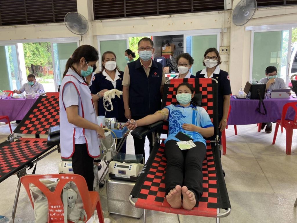 วันที่ 29 กันยายน 2564 นางสายชล บุญอรณะ นายกเหล่ากาชาดจังหวัดนครราชสีมา มอบหมายให้เจ้าหน้าที่ สาขาบริการโลหิตแห่งชาติ เหล่ากาชาดจังหวัดนครราชสีมา ร่วมกับโรงพยาบาลมหาราชนครราชสีมาออกรับบริจาคโลหิต เพื่อเป็นการจัดหาโลหิตสำหรับใช้ในการรักษาผู้ป่วย ของโรงพยาบาลในจังหวัดนครราชสีมา โดยมี นายธงชัย โอฬารพัฒนะชัย นายอำเภอจักราช/นายกกิ่งกาชาดอำเภอจักราช พร้อมด้วยกรรมการกิ่งกาชาดอำเภอจักราช เจ้าหน้าที่สาธารณสุข ร่วมปฏิบัติงานรับบริจาคโลหิต โดยปฏิบัติตามมาตรการป้องกันการแพร่ระบาดของเชื้อไวรัสโคโรนา 2019 (โควิด-19) ณ ศาลาประชาคมที่ว่าการอำเภอจักราช จำนวนโลหิตที่ไดัรับบริจาค 65 ยูนิต